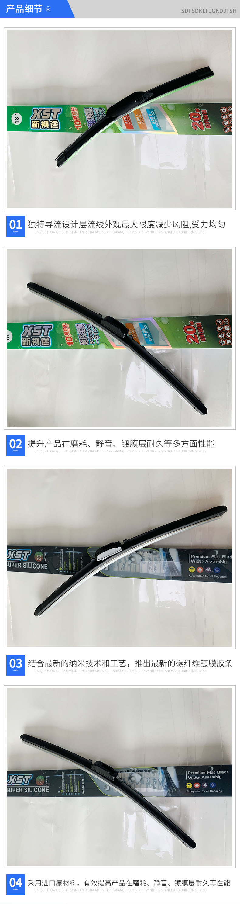 新視途汽車配件有限公司針對汽車售后市場,潛心專業(yè)專注的研究硅膠鍍膜技術(shù),專注改良、開發(fā)多款配方和工藝,多年來根據(jù)不同雨刷款型的需要,推出多系列通用和專用鍍膜膠條,目前結(jié)合最新的納米技術(shù)和工藝,再次推出最新的碳纖維鍍膜膠條,且采用德國進口原材料,有效提高產(chǎn)品在磨耗、靜音、鍍膜層耐久等性能,是普通雨刷數(shù)倍。